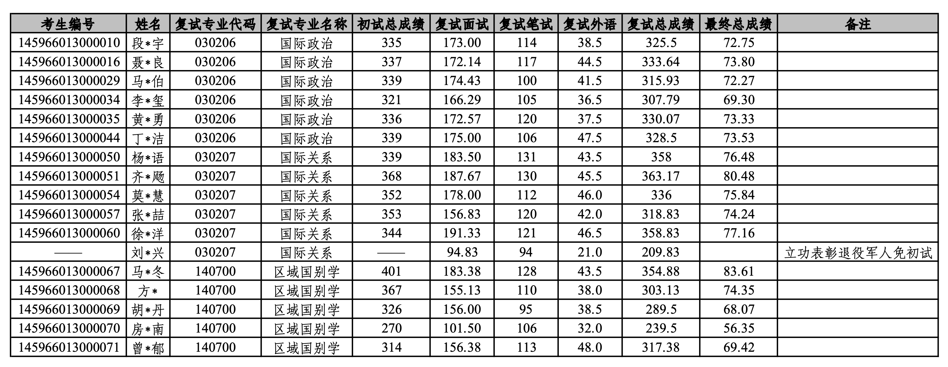 全球与区域国别麻豆av 于3月21日组织完成区域国别学、国际政治、国际关系三个专业的硕士研究生招生复试,现将复试结果公布如下: